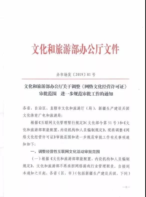 文旅部關(guān)于調(diào)整《網(wǎng)絡(luò)文化經(jīng)營(yíng)許可證》審批范圍的通知
